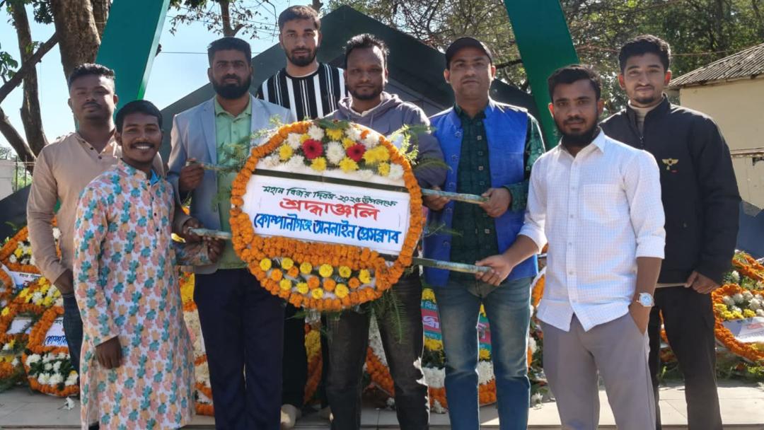 ইমরান আহমেদ,কোম্পানীগঞ্জ সিলেট।সিলেটের কোম্পানীগঞ্জ উপজেলা মহান বিজয় দিবস উপলক্ষে ১৬ ই ডিসেম্বর২০২৫ ইং উদযাপিত হয়েছে, মঙ্গলবার কোম্পানীগঞ্জ উপজেলা কেন্দ্রীয় শহিদ মিনারে কোম্পানীগঞ্জ অনলাইন প্রেসক্লাবের পক্ষ থেকে পুষ্পস্তবক অর্পণ করা হয়েছে।