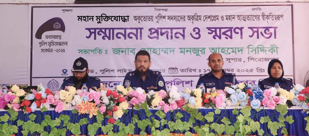 মোঃ মনিরুল ইসলাম চৌধুরী,স্টাফ রিপোর্টার: মহান বিজয় দিবস–২০২৫ উপলক্ষে পিরোজপুর জেলা পুলিশের উদ্যোগে বীর পুলিশ মুক্তিযোদ্ধাদের সংবর্ধনা প্রদান করা হয়েছে। বুধবার (১৭ ডিসেম্বর) দুপুরে পিরোজপুর পুলিশ লাইন্স ড্রিল শেডে এ সংবর্ধনা অনুষ্ঠানের আয়োজন করা হয়।