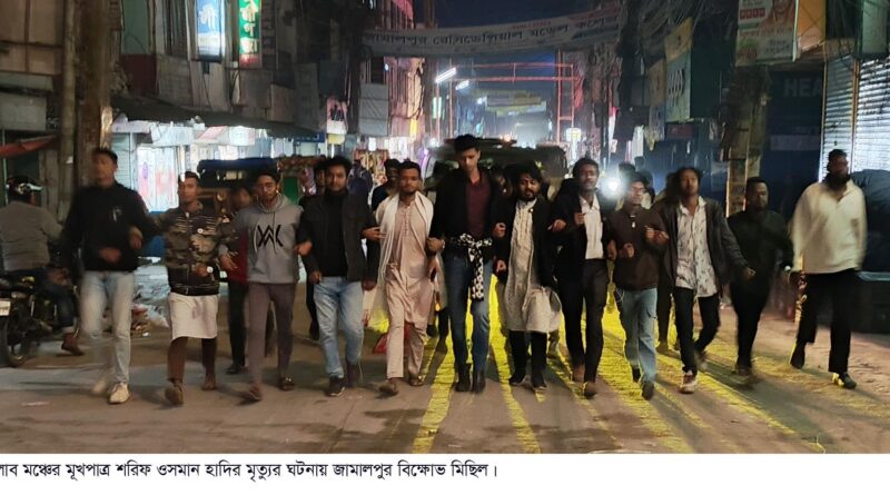 Read moreলিয়াকত হোসাইন লায়ন, জামালপুর প্রতিনিধি : ইনকিলাব মঞ্চের মুখপাত্র শরিফ ওসমান হাদির মৃত্যুর ঘটনায় জামালপুরে পৃথক তিনটি স্থানে বিক্ষোভ মিছিল