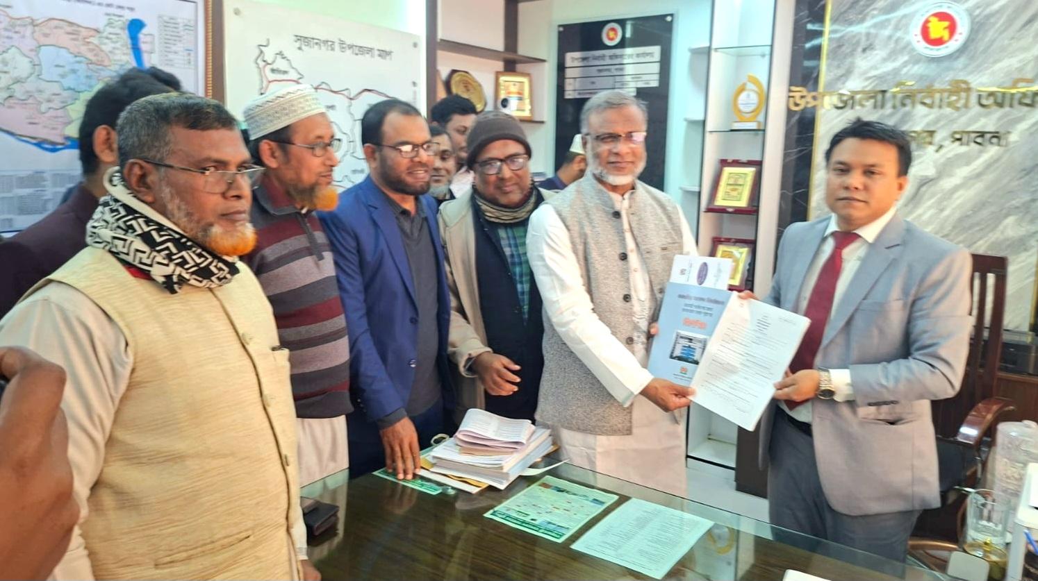 পাবনা-২ আসনে জামায়াত এমপি প্রার্থী অধ্যাপক কে এম হেসাব উদ্দিনের মনোনয়ন ফরম সংগ্রহ