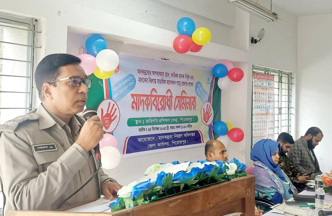 বুধবার (২৪ ডিসেম্বর) সকালে পিরোজপুরে মাদকদ্রব্য নিয়ন্ত্রণ অধিদপ্তরের আয়োজনে কারিগরি প্রশিক্ষণ কেন্দ্রের হলরুমে এ সেমিনার অনুষ্ঠিত হয়। অনুষ্ঠানে প্রধান অতিথি হিসেবে উপস্থিত ছিলেন অতিরিক্ত জেলা ম্যাজিস্ট্রেট তানজিলা কবির ত্রপা।