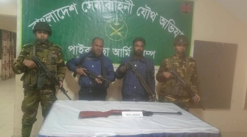 সেখ রাসেল, দপ্তর সম্পাদক: খুলনার পাইকগাছা উপজেলায় বিএনপির এক ওয়ার্ড সভাপতির বাড়ি থেকে লাইসেন্সবিহীন অবৈধ অস্ত্র উন্নতমানের (এরায়গান) উদ্ধার করেছে