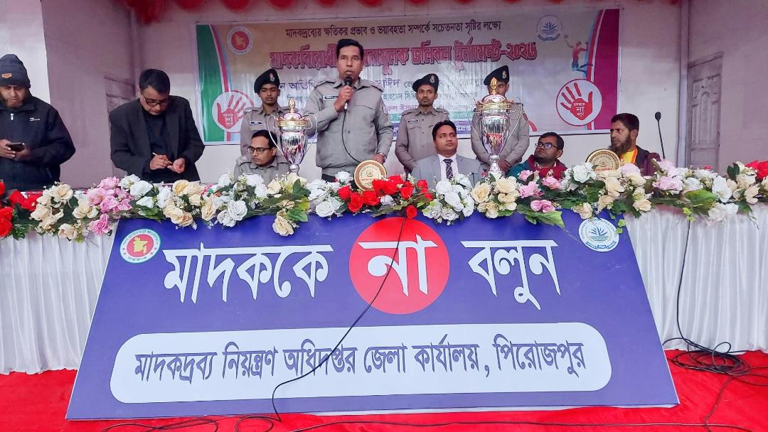 ‘খেলাধুলায় বাড়ে বল, মাদক ছেড়ে খেলতে চল’—এই স্লোগানকে সামনে রেখে পিরোজপুরে মাদকবিরোধী গণসচেতনতা সৃষ্টি ও মাদকমুক্ত সমাজ গঠনের লক্ষ্যে অনুষ্ঠিত হয়েছে মাদকবিরোধী ভলিবল ও ব্যাডমিন্টন টুর্নামেন্ট–২০২৬।