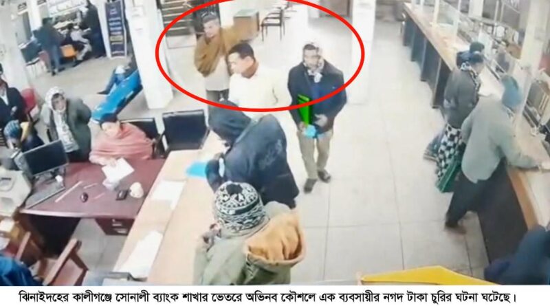 Read moreসাইফুল ইসলাম ঝিনাইদহ সংবাদদাতা- ঝিনাইদহের কালীগঞ্জে সোনালী ব্যাংক শাখার ভেতরেই অভিনব কৌশলে এক ব্যবসায়ীর নগদ টাকা চুরির ঘটনা ঘটেছে। এ