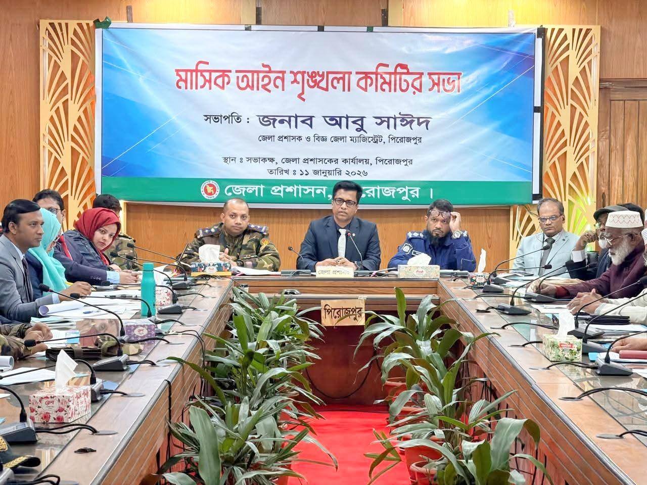 পিরোজপুরে মাসিক আইনশৃঙ্খলা কমিটির সভা অনুষ্ঠিত হয়েছে। রবিবার (১১ জানুয়ারি) সকালে জেলা প্রশাসকের কার্যালয়ের আব্দুর রাজ্জাক সাইফ–মিজান সভাকক্ষে এ সভা অনুষ্ঠিত হয়।