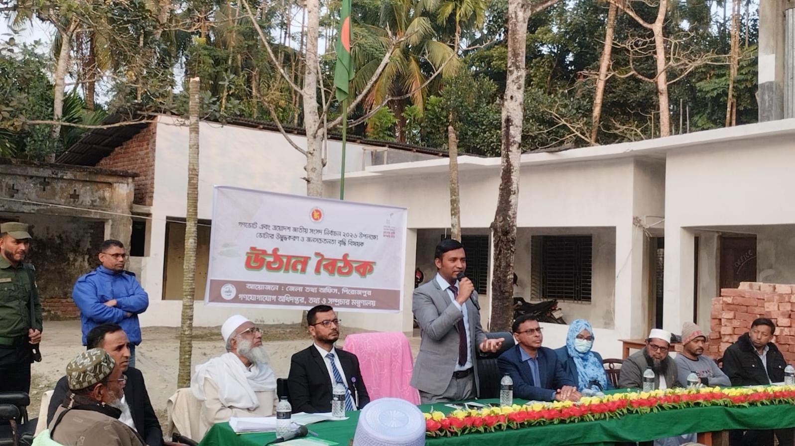 পিরোজপুরে গণভোট ও জাতীয় সংসদ নির্বাচন উপলক্ষে ভোটার উদ্বুদ্ধকরণ ও জনসচেতনতা বৃদ্ধিতে উঠান বৈঠক অনুষ্ঠিত