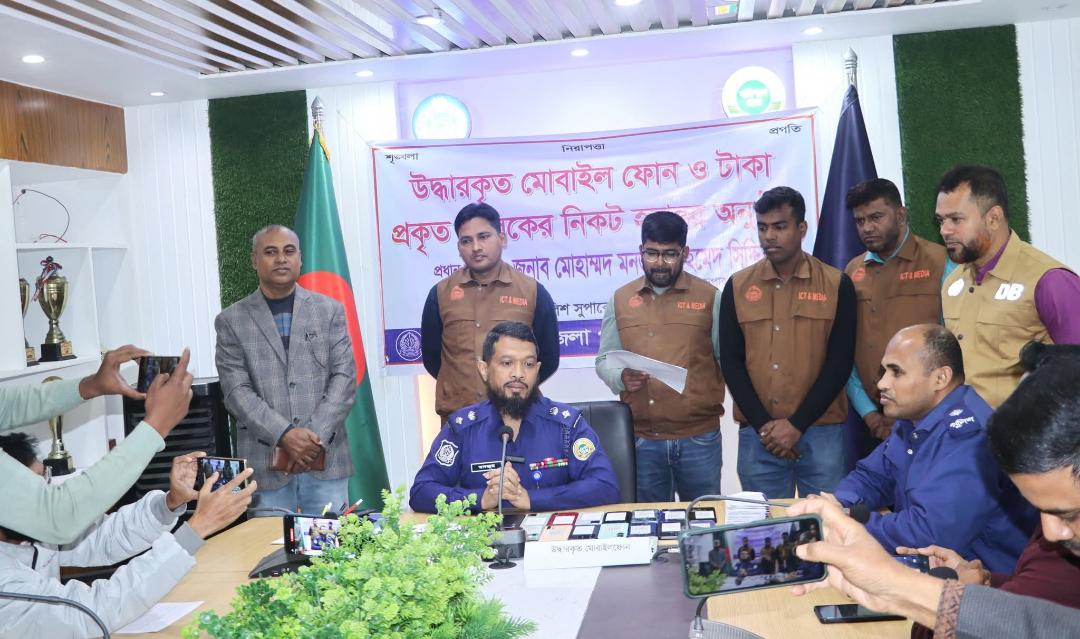 পিরোজপুরে হারানো মোবাইল ও টাকা উদ্ধার করে প্রকৃত মালিকদের হাতে তুলে দিল পুলিশ সুপার