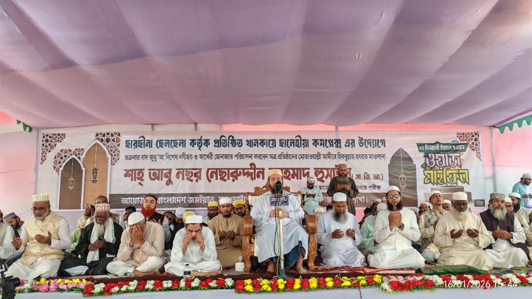 শুক্রবার (১৬ জানুয়ারি) জুমার নামাজের পর ঢাকার অদূরে মুন্সিগঞ্জ জেলার শ্রীনগর উপজেলার কামারখোলা খানকায়ে ছালেহিয়া কমপ্লেক্সে অনুষ্ঠিত দুই দিনব্যাপী ঈছালে ছাওয়াব মাহফিলের শেষ দিনের আলোচনা সভায় তিনি এসব কথা বলেন।