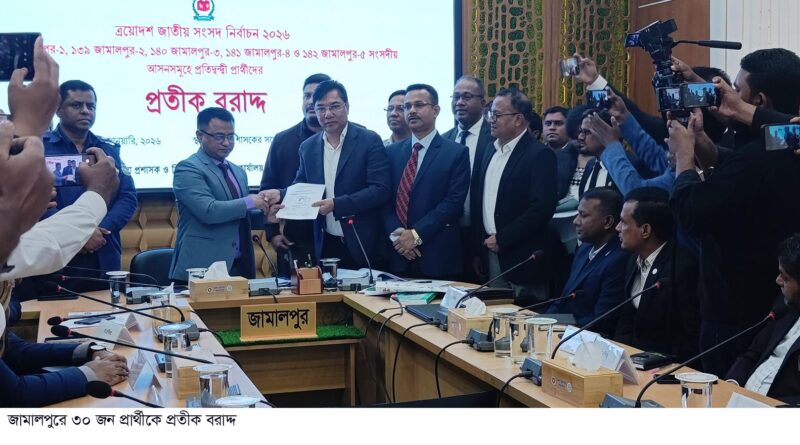Read moreলিয়াকত হোসাইন লায়ন,জামালপুর প্রতিনিধি।। ত্রয়োদশ জাতীয় সংসদ নির্বাচনে অংশ নিতে জামালপুরে ৫টি সংসদীয় আসনের ৩০ জন প্রার্থীকে প্রতীক বরাদ্দ দেওয়া