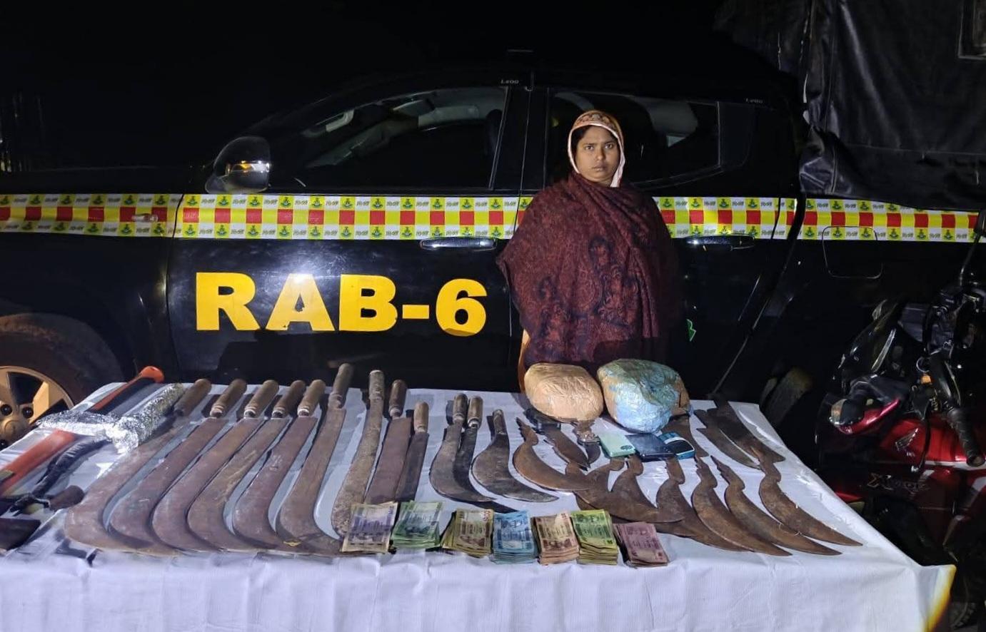 হরিণাকুণ্ডুতে মাদক-দেশীয় অস্ত্রসহ নারী গ্রেফতার