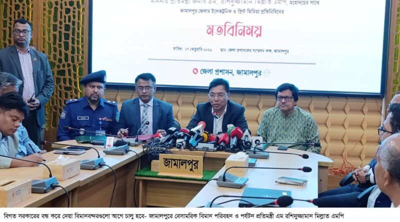 Read moreলিয়াকত হোসাইন লায়ন, জামালপুর প্রতিনিধি জামালপুরে বেসামরিক বিমান পরিবহন ও পর্যটন প্রতিমন্ত্রী এম রশিদুজ্জামান মিল্লাত এমপি বলেছেন, আমাদের অনেকগুলো বিমানবন্দর