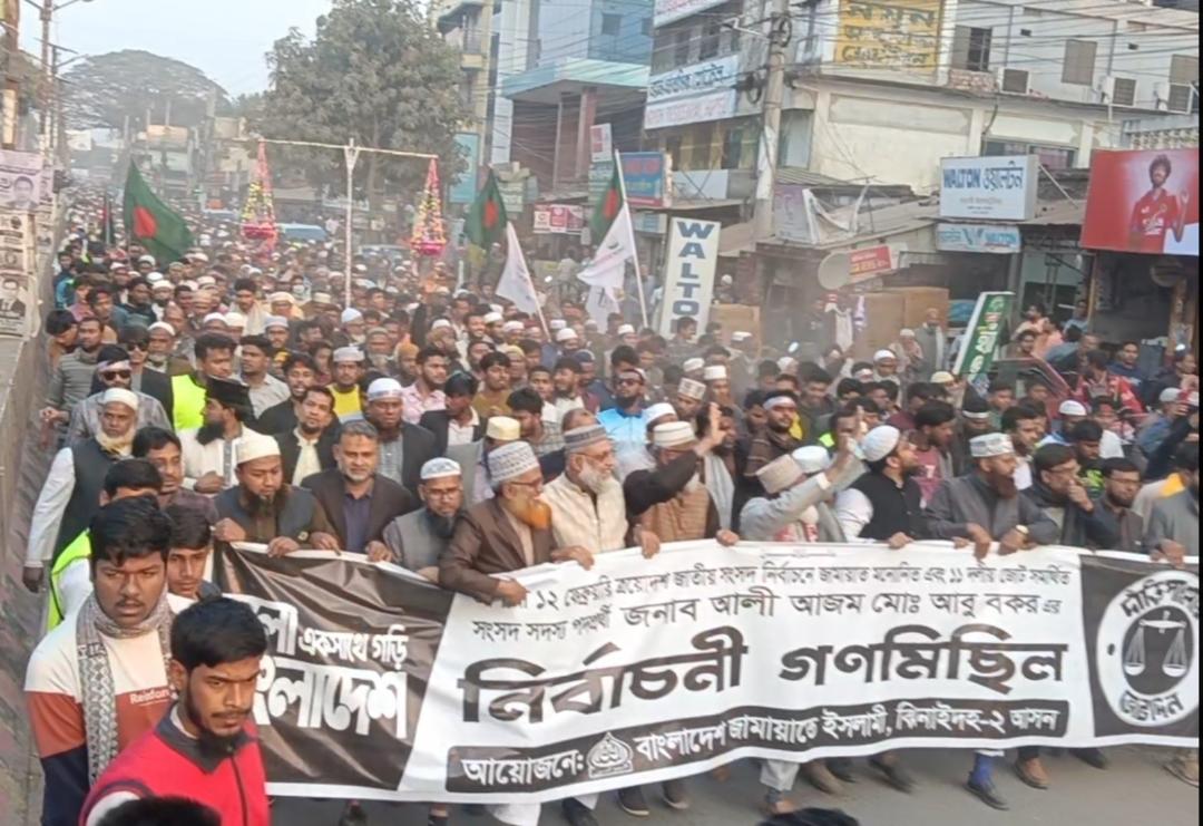 ঝিনাইদহ শহরে জামায়াতের নির্বাচনী গণমিছিল- নারায়ে তাকবির ধ্বনিতে জনসমুদ্রে পরিণত পুরো শহর