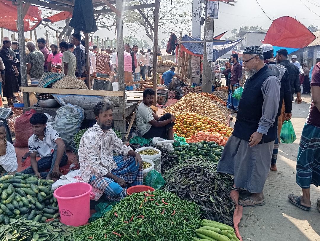সরেজমিনে দেখা যায়, বাজারের খোলা জায়গা ও সড়কের দুই পাশে সারি সারি করে বসেছে সবজি ও অন্যান্য পণ্যের দোকান। বিক্রেতারা কেউ মাটিতে চট বিছিয়ে, কেউ অস্থায়ী টেবিল বা বাঁশের মাচা তৈরি করে পণ্য সাজিয়ে বসেছেন। ক্রেতারা দরদাম করে প্রয়োজনীয় জিনিসপত্র কিনছেন, আবার কেউ কেউ পাইকারি দামে পণ্য সংগ্রহ করছেন।
