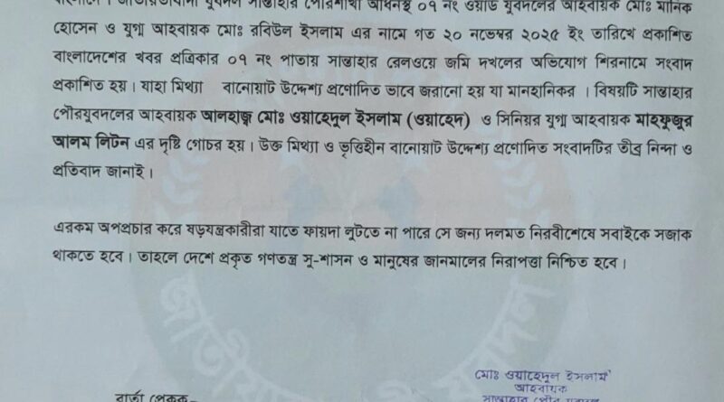 Read moreজামালপুর প্রতিনিধি ।। জামালপুরের ইসলামপুর সরকারি কলেজে ছাত্রাবাসের টিন বিক্রির অভিযোগে কলেজ ছাত্রদল দুই নেতাকে অব্যহতি দেওয়া হয়েছে। বুধবার (২৫