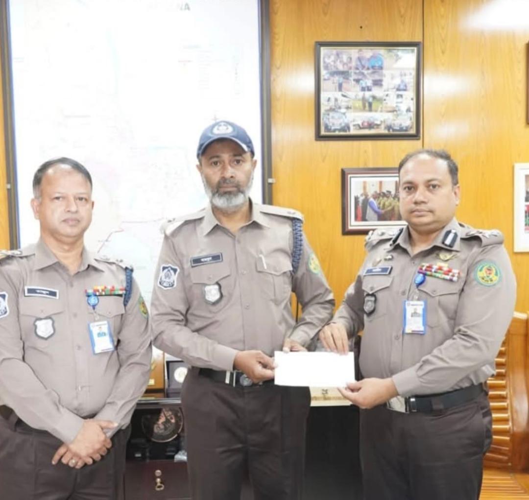 সন্ত্রাসী গ্রেফতারে সাহসী ভূমিকা রাখায় পুলিশ পরিদর্শককে পুরস্কৃত করলেন কেএমপি কমিশনারঃ