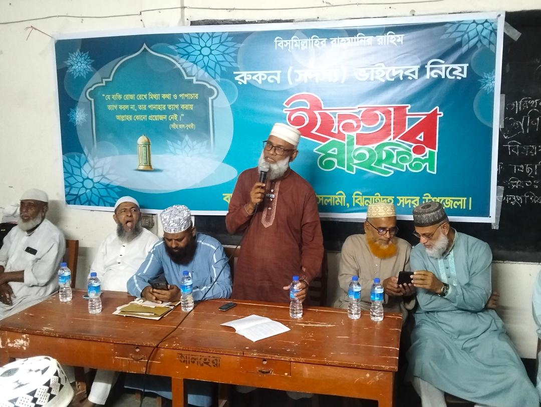 বাংলাদেশ জামায়াতে ইসলামীর ঝিনাইদহ সদর উপজেলা শাখার উদ্যোগে সংগঠনের রুকন (সদস্য)দের নিয়ে এক ইফতার মাহফিল অনুষ্ঠিত হয়েছে। বুধবার বিকেলে ঝিনাইদহ শহরের আলহেরা অফিস কক্ষে এ ইফতার মাহফিলের আয়োজন করা হয়।