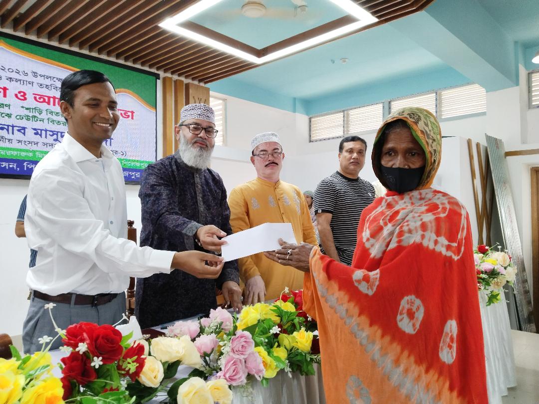 অনুষ্ঠানে ৫’শ অসহায় পরিবারকে ১ হাজার টাকা করে নগদ অর্থ, ৩’শ অসহায় নারীকে শাড়ি এবং ১৯টি পরিবারকে ঢেউটিন প্রদান করা হয়।