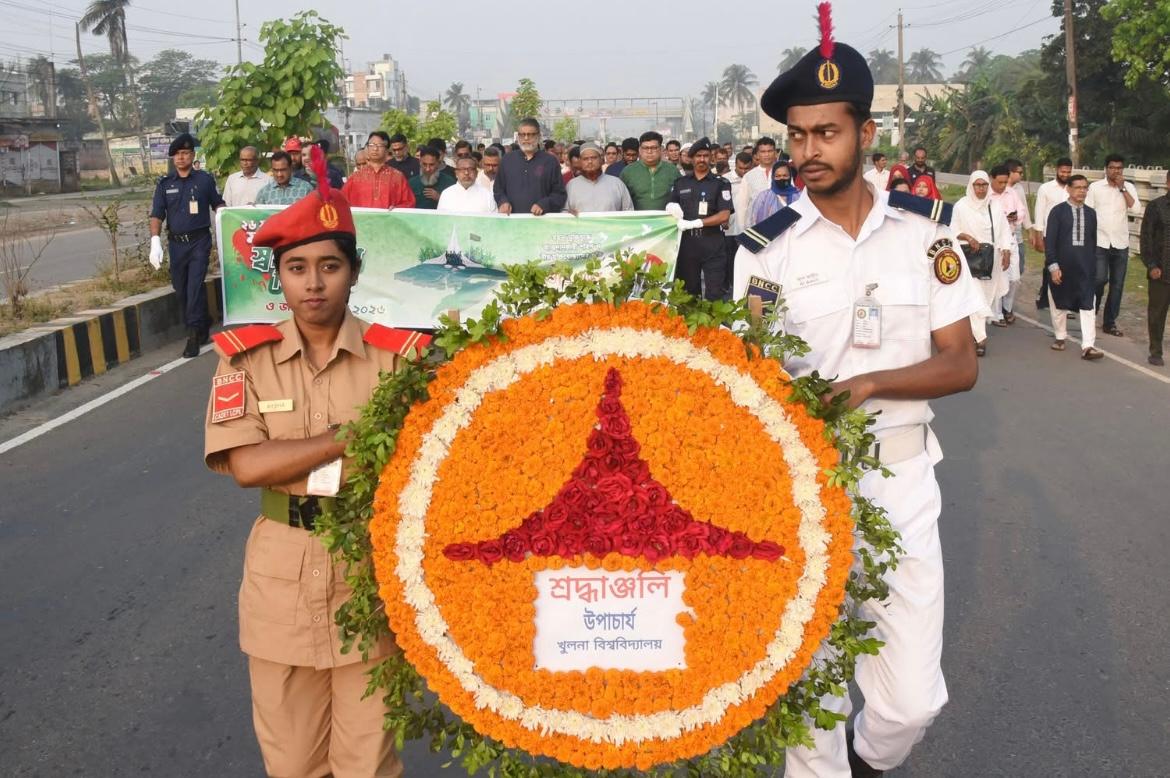 পরে উপাচার্যের নেতৃত্বে ক্যাম্পাস থেকে শোভাযাত্রা শুরু হয়ে গল্লামারী বধ্যভূমিতে গিয়ে শেষ হয়। সেখানে বিশ্ববিদ্যালয়ের পক্ষে উপাচার্য শ্রদ্ধাঞ্জলি নিবেদন করেন। এ সময় বিশ্ববিদ্যালয়ের উপ-উপাচার্য, ট্রেজারার, বিভিন্ন স্কুলের ডিন, রেজিস্ট্রার (ভারপ্রাপ্ত), ডিসিপ্লিন প্রধান, ছাত্র বিষয়ক পরিচালক, প্রভোস্ট, পরিচালকসহ শিক্ষক-শিক্ষার্থী ও কর্মকর্তা-কর্মচারীবৃন্দ উপস্থিত ছিলেন। পরে প্রভোস্ট কাউন্সিল ও বিভিন্ন ডিসিপ্লিনের পক্ষ থেকে শ্রদ্ধাঞ্জলি নিবেদন করা হয়।