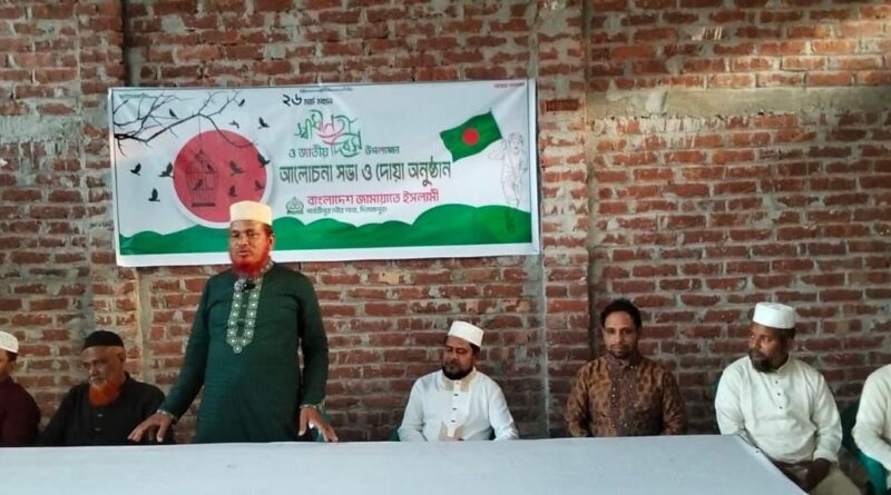 Read moreসাইফুল ইসলাম ঝিনাইদহ সংবাদদাতা- মহান স্বাধীনতা দিবস ২৬ মার্চ উপলক্ষে বাংলাদেশ জামায়াতে ইসলামী ঝিনাইদহ শহর শাখার উদ্যোগে আলোচনা সভা ও