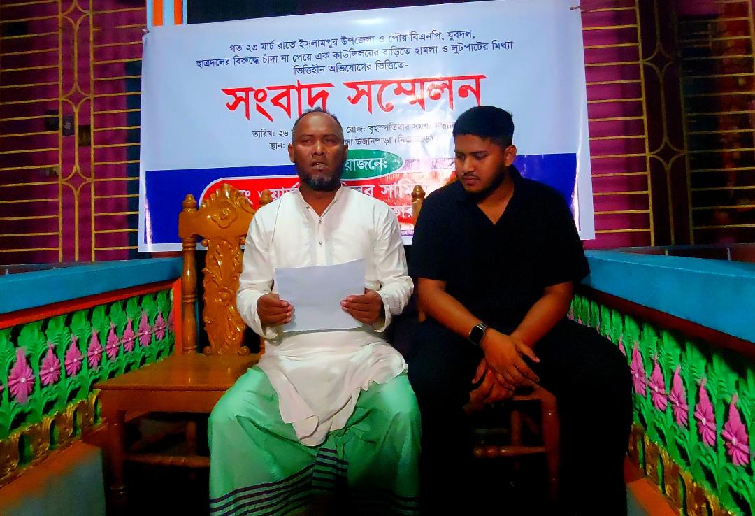 ইসলামপুরে বিএনপির নেতাকর্মীদের বিরুদ্ধে স্ত্রীর ভিত্তিহীন অভিযোগ প্রত্যাহার করে স্বামীর সংবাদ সম্মেলন